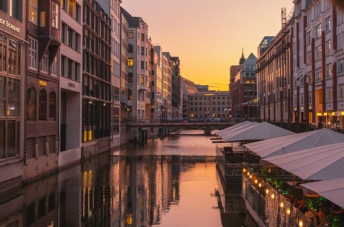In addition to the Elbe River, the Alster Lake also offers wonderful boat trips through Hamburg. Experience the idyllic canals of the Alster Lake on a leisurely Alster canal cruise. This tour takes you through picturesque neighbourhoods, past beautiful villas and green banks. The tranquil journey through the narrow canals allows you to admire Hamburg's beautiful nature and architecture. Slow down in the middle of our exciting metropolis. The tours start just outside the gates of Fairmont Hotel Vier Jahreszeiten Hamburg.