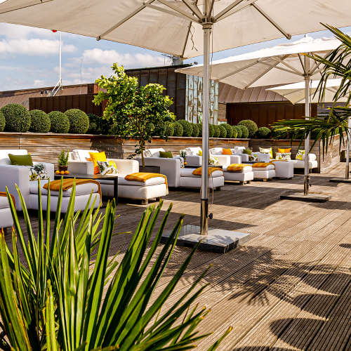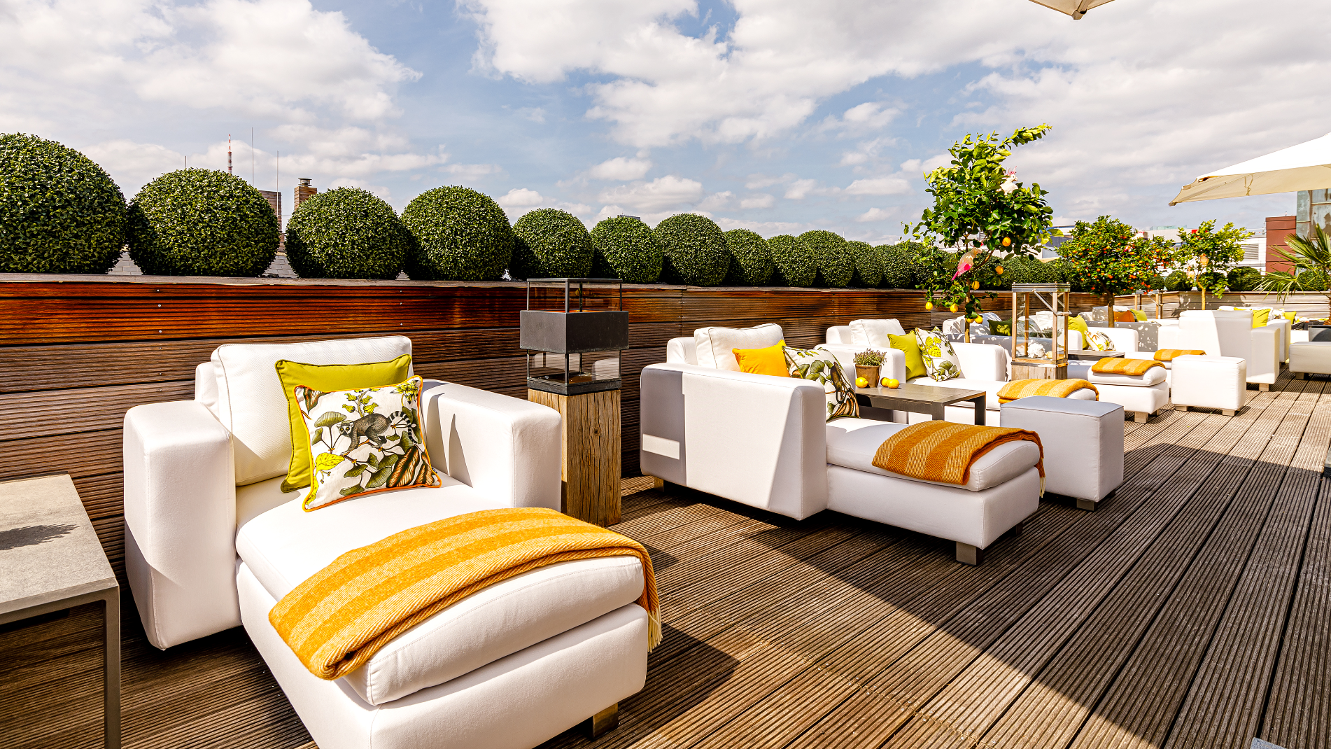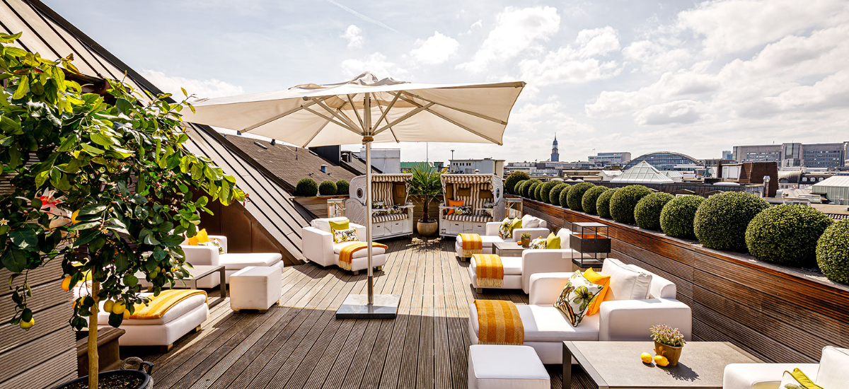 During the summer months, you can expect the finest luxury on our sunny terrace. Enjoy the breathtaking view over the roofs of Hamburg at our Rooftop Terrace and indulge in a light lunch or a refreshing drink on our luxurious sun beds.