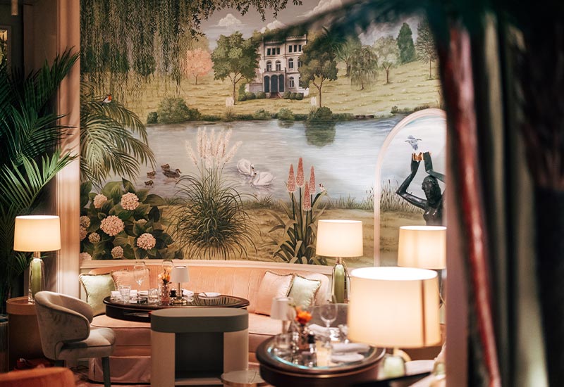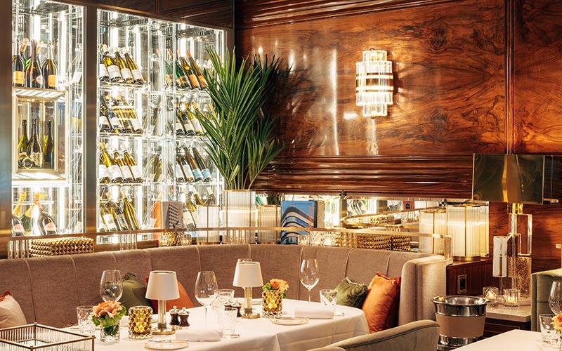 Willkommen in einer der schönsten Dinner Locations Hamburgs! Das Interieur unseres GRILL Restaurants in der Innenstadt verbreitet eine Atmosphäre von zeitloser Eleganz und Wärme. Tauchen Sie ein in eine verwunschene Welt, in der Träume wahr werden. Im Restaurant schaffen kaukasischer Nussbaum, warme Farben wie Olivgrün und Taubenblau zusammen mit einem Kaminfeuer eine elegante und wohnliche Atmosphäre. Der Ovale Salon erstrahlt in zarten Pastelltönen und einer umlaufenden Wandmalerei, die vom Hamburger Feenteich inspiriert ist. Exotische Pflanzen schaffen eine faszinierende Kulisse und einen einzigartigen Ort zum Verweilen. Im Zusammenspiel verschmelzen die historische Gestaltung Emil Fahrenkamps und die zeitgenössischen Kunst- [&] Designelemente miteinander und schaffen den Einklang von Tradition und Moderne, wofür das Hotel Vier Jahreszeiten steht.
