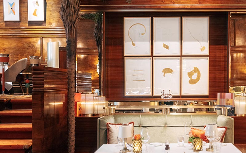 Im GRILL spielt neben dem exklusiven Interieur auch die Kunst eine bedeutende Rolle. Die mehrteiligen Arbeiten der international bekannten Künstlerin Jorinde Voigt verleihen dem Ambiente eine moderne Note.