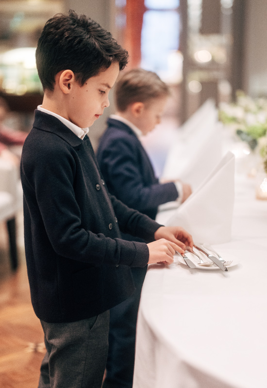 Moderne Umgangsformen gelten nicht nur beim Dinner oder Lunch, auch im täglichen Berufsleben sowie im privaten Umfeld gibt es immer wieder Momente, in denen das souveräne Auftreten wichtig ist. Im Hotel Vier Jahreszeiten Hamburg können Sie aus verschiedenen Etikette Kursen den für Sie passenden auswählen, um Sicherheit hinsichtlich Umgangsform, Tischkultur und Kleiderempfehlung zu gewinnen. Angepasst auf die jeweilige Altersklasse und dem persönlichen Etikette Anliegen lernen die Teilnehmerinnen und Teilnehmer an der Seite der erfolgreichen Etikette Expertin Meike Slaby-Sandte Theorie und Praxis optimal umzusetzen.