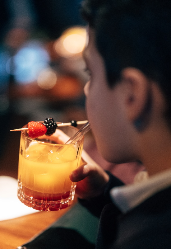 - Alkoholfreier Cocktail zum Apèritif in der Bar. U.a. werden Details wie das Halten der Gläser und das Verspeisen der Fruchtgarnitur der Cocktails angesprochen