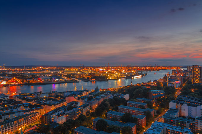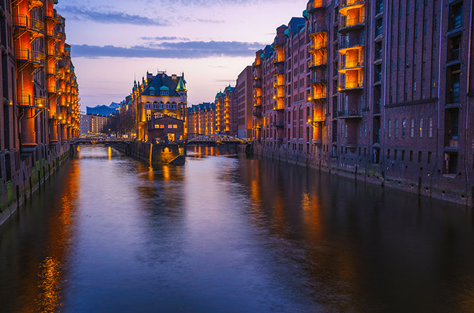 One of the most beautiful tours is the Evening Lights Tour. When the sun goes down, Hamburg shines in a very extraordinary light. The city sparkles and exudes a special magic. Breathtaking views of the illuminated sights and the city skyline as well as a wonderfully romantic atmosphere await you on an evening lights cruise. Choose between a 1-hour cruise on a large ship or a 1.5-hour cruise. Both tours are a unique experience, but the trip through the illuminated Speicherstadt on a small boat is truly unrivalled.