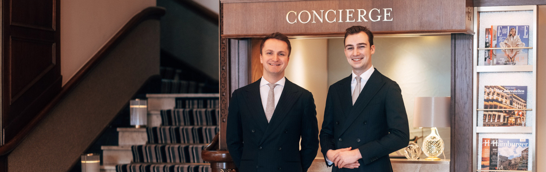 The 'Goldenen Schlüssel Deutschlands' are part of the exclusive Les Clefs d'Or network, which was founded in France in 1929 and still unites the world's elite concierges. Linus Eckmann and Luis Hänßgen trained at Fairmont Hotel Vier Jahreszeiten Hamburg and have made a name for themselves as concierges in just two years. As hotel director Ingo C. Peters puts it: With their dedication, passion and tireless efforts, Linus Eckmann and Luis Hänßgen have quickly become true ambassadors of our hotel philosophy.