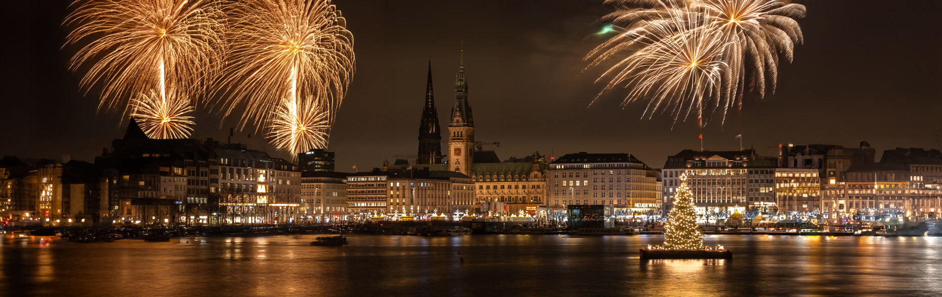 Lakeside Stroll: Walk along the beautifully illuminated Inner Alster Lake and enjoy views from Jungfernstieg, where the Alster fountain and skyline create a stunning backdrop to the fireworks.