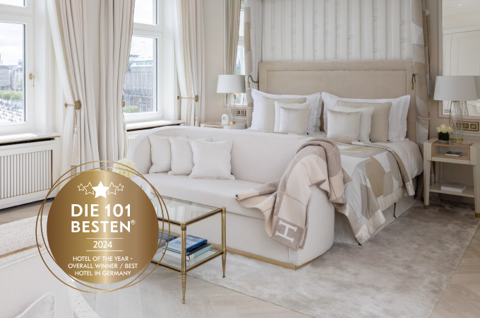 Fairmont Hotel Vier Jahreszeiten Hamburg has once again reached an outstanding milestone. In the latest ranking of the renowned '101 Best' award, our hotel was named Hotel of the Year in Germany, Austria, Switzerland and South Tyrol. This prestigious award once again confirms the exceptional standard of Fairmont Hotel Vier Jahreszeiten Hamburg and cements its status as the top hotel in Hamburg.