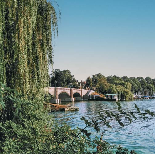 The Inner Alster Lake is located at the city centre at Jungfernstieg, together with the Outer Alster Lake with its green parks and elegant white buildings the Alster Lake is a delight for the eyes. Y ou can take an exquisite stroll along its waterside for 7.4 kilometres, stopping now and then at small cafes like the Alsterperle and letting your gaze wander. You can also rent a rowing boat from Bodo's landing stage and enjoy the Alster Lake from the water.