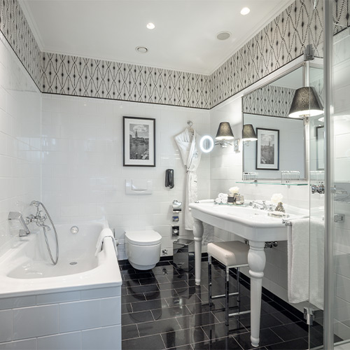 Enjoy the peace and quiet of our suites facing the garden and relax in the luxurious environment of our spacious living and sleeping areas as well as our exquisite bathrooms.